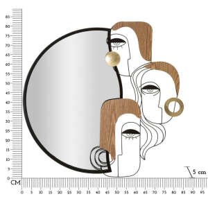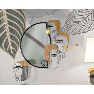 Specchio da parete con eleganti facce che richiamano l’arte cubista, realizzate con linee morbide in metallo e decorate con inserti in legno.