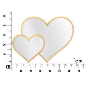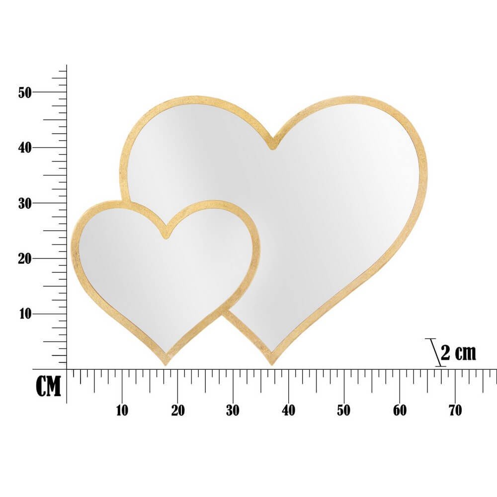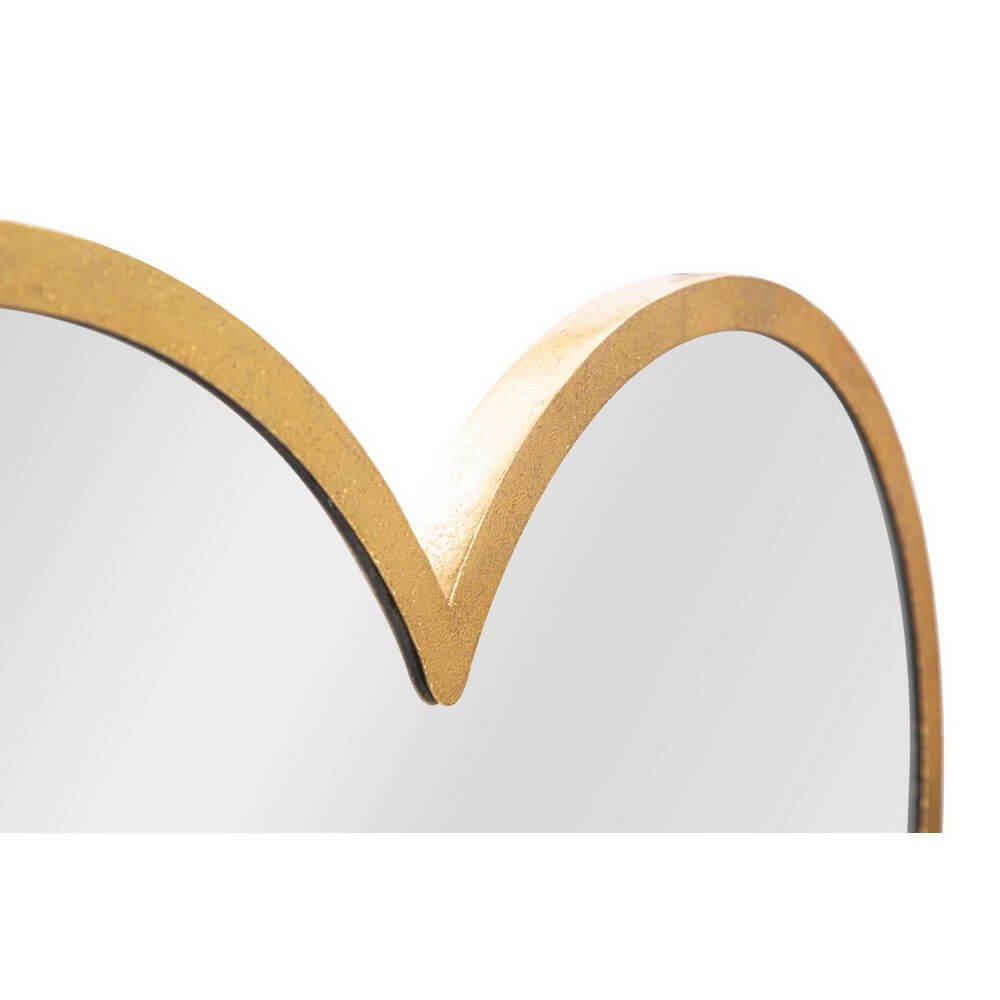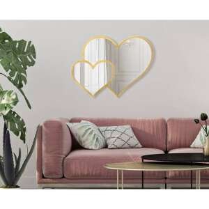 Specchio da parete a forma di cuori in metallo dorato dal design dolce ed elegante. Gli specchi sono un ottimo strumento per rendere gli spazi più ampi visivamente. Lo specchio crea un insieme originale ed equilibrato.