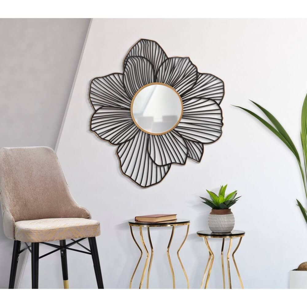 Specchio da parete con la particolare cornice che compone un fiore finemente intagliato