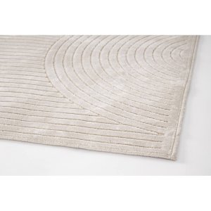 Il Tappeto Viscosa Beige Moderno da Interno 160×230 – MORRIS è un complemento d’arredo raffinato e contemporaneo, perfetto per valorizzare ambienti living, camere da letto o zone studio con un tocco di eleganza sobria. Realizzato con fronte in viscosa pile e ciniglia, questo tappeto si distingue per una superficie morbida e leggermente lucida che dona luce e profondità allo spazio. Il retro in latex antiscivolo assicura stabilità, rendendolo ideale anche per aree ad alto passaggio. La tessitura Wilton eseguita su telaio meccanico garantisce qualità e precisione nei dettagli, evidenziati da un design geometrico a semicerchi concentrici in rilievo tono su tono, che crea un effetto visivo sofisticato e moderno. Il colore beige neutro lo rende estremamente versatile, in grado di armonizzarsi con diversi stili di arredamento, dal minimalista allo scandinavo. L’assenza di imballo in cartone riflette una scelta pratica e sostenibile. Il tappeto MORRIS esprime il suo massimo potenziale in interni curati e luminosi, dove può diventare un punto focale discreto ma di grande impatto estetico, garantendo comfort visivo e tattile a ogni passo.