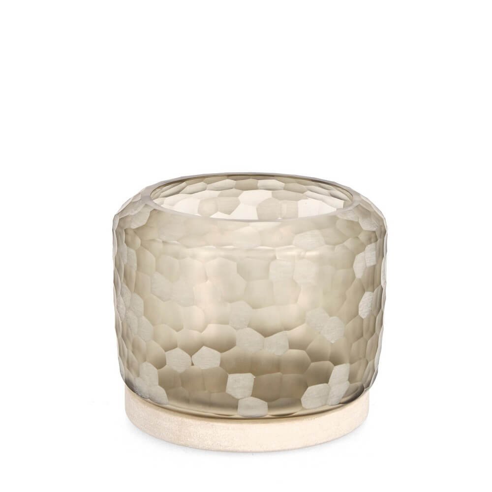 Il Porta Candela Vetro Beige Moderno H19 da Interno – HASSAN è un raffinato elemento decorativo che coniuga artigianalità e stile contemporaneo per arricchire l’ambiente con un tocco di eleganza discreta. Realizzato in vetro lavorato a mano con una finitura sfaccettata che cattura e diffonde la luce in modo suggestivo, questo porta candela si distingue per le sue variazioni cromatiche naturali, che lo rendono unico e ricercato. Il colore beige tenue si integra perfettamente sia in ambienti moderni che minimalisti, donando calore visivo e armonia agli spazi interni. La solida base in pietra contrasta con delicatezza la texture del vetro, garantendo stabilità oltre a un dettaglio materico che ne esalta l’estetica. Ideale come complemento d’arredo per salotti, ingressi o camere da letto, il Porta Candela HASSAN valorizza ogni ambiente, creando atmosfere accoglienti e sofisticate. Perfetto per chi cerca oggetti decorativi in vetro di qualità, unici nella loro imperfezione artigianale, si presta splendidamente a essere utilizzato durante momenti di relax serali, arricchendo l’esperienza sensoriale con luce soffusa e calda.
