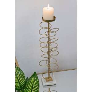 Elegante portacandele in metallo dorato con base in marmo. Il design geometrico dona in tocco di classe ad ogni ambiente.