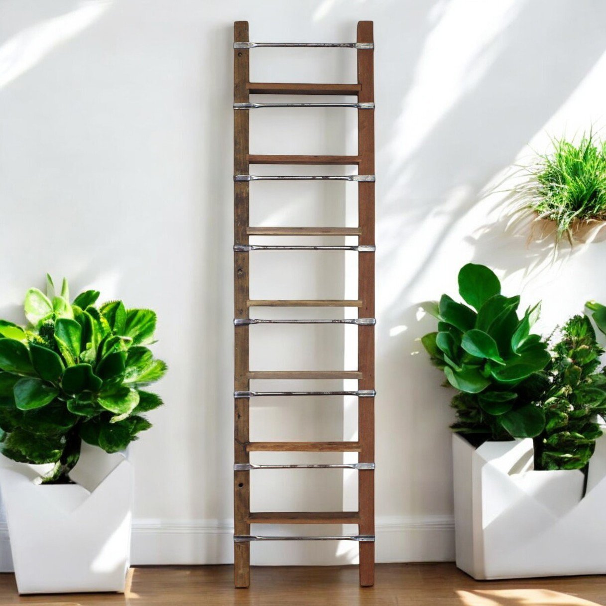 Il *Mobile in legno 7 ripiani scaletta – BELLATRIX* è una soluzione d’arredo dal carattere deciso e autentico, perfetta per chi ama lo stile industriale e cerca un elemento funzionale ma di grande impatto estetico. Realizzato in legno riciclato, si distingue per l’aspetto materico e vissuto che conserva le imperfezioni naturali del materiale, valorizzando la sostenibilità e l’artigianalità del prodotto. L’alternanza di ripiani orizzontali e l’effetto “scaletta” gli conferiscono un design originale e versatile, perfetto per arredare con personalità spazi come café, bistrot o ambienti domestici dallo stile urbano e contemporaneo. La struttura verticale fissa, dalle dimensioni compatte (41 x 11 x 165 cm), consente di sfruttare al meglio lo spazio in altezza, offrendo sette ripiani ideali per esporre oggetti decorativi, piante o elementi grafici. Il colore marrone caldo del legno si abbina armoniosamente con gli inserti in metallo scuro, esaltando ulteriormente il gusto industrial-chic. Il *Mobile in legno BELLATRIX* trova la sua massima espressione in contesti accoglienti e creativi, dove l’estetica ruvida e genuina incontra il bisogno di ordine e stile.