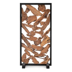 Il Paravento in Teak Marrone Rustico da Interno – PHOEBE è una raffinata soluzione d’arredo pensata per chi desidera coniugare funzionalità e stile naturale. Questo elegante separé da interno colpisce per il suo design scultoreo: una struttura in solido legno meranti racchiude un pannello artistico composto da radici di teak modellate dalla natura, con una finitura a base d’acqua che ne esalta la matericità e le venature calde. Ogni pezzo è unico, poiché le forme irregolari e organiche del teak variano naturalmente, rendendo ogni paravento irripetibile e autentico. L’intenso colore marrone e il contrasto con la robusta cornice nera donano carattere a qualsiasi ambiente, dal living contemporaneo a uno spazio in stile industriale o etnico. Ideale come divisorio decorativo o come elemento scenografico per impreziosire una parete, il paravento PHOEBE dona un tocco di artigianalità e calore alle stanze. L’esperienza d’uso è arricchita dalla semplicità di assemblaggio dei piedini e dalla forte presenza estetica che trasforma ogni spazio in un ambiente accogliente e sofisticato.
