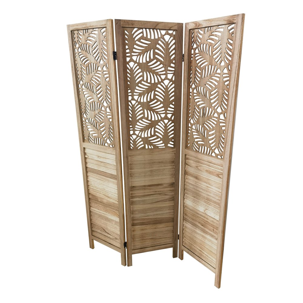 Il separè paravento per interni ZELIA è la soluzione perfetta per chi desidera suddividere gli spazi con eleganza e carattere, senza rinunciare al calore dei materiali naturali. Realizzato interamente in legno marrone, presenta un raffinato stile country che richiama atmosfere accoglienti e rustiche, perfette per ambienti come café, bistrot o angoli relax domestici. Le tre ante pieghevoli permettono un utilizzo versatile e pratico, facilitando il riposizionamento o l’eventuale chiusura. Il vero tratto distintivo di ZELIA risiede nei suoi pannelli superiori intagliati con un disegno traforato a motivi fogliari che filtra con delicatezza la luce, creando suggestivi giochi d’ombra e impreziosendo lo spazio con un tocco decorativo ricercato. Le venature naturali del legno e la lavorazione artigianale conferiscono unicità a ogni elemento, mentre le dimensioni generose (170 cm di larghezza complessiva per 40 cm di profondità e 2 cm di spessore) lo rendono efficace come divisorio o elemento d’arredo anche in contesti professionali. Il paravento ZELIA esprime al meglio il suo valore in ambienti dal gusto naturale e curato, offrendo stile, funzionalità e un’eleganza discreta in perfetta sintonia con le tendenze dell’arredo country chic.