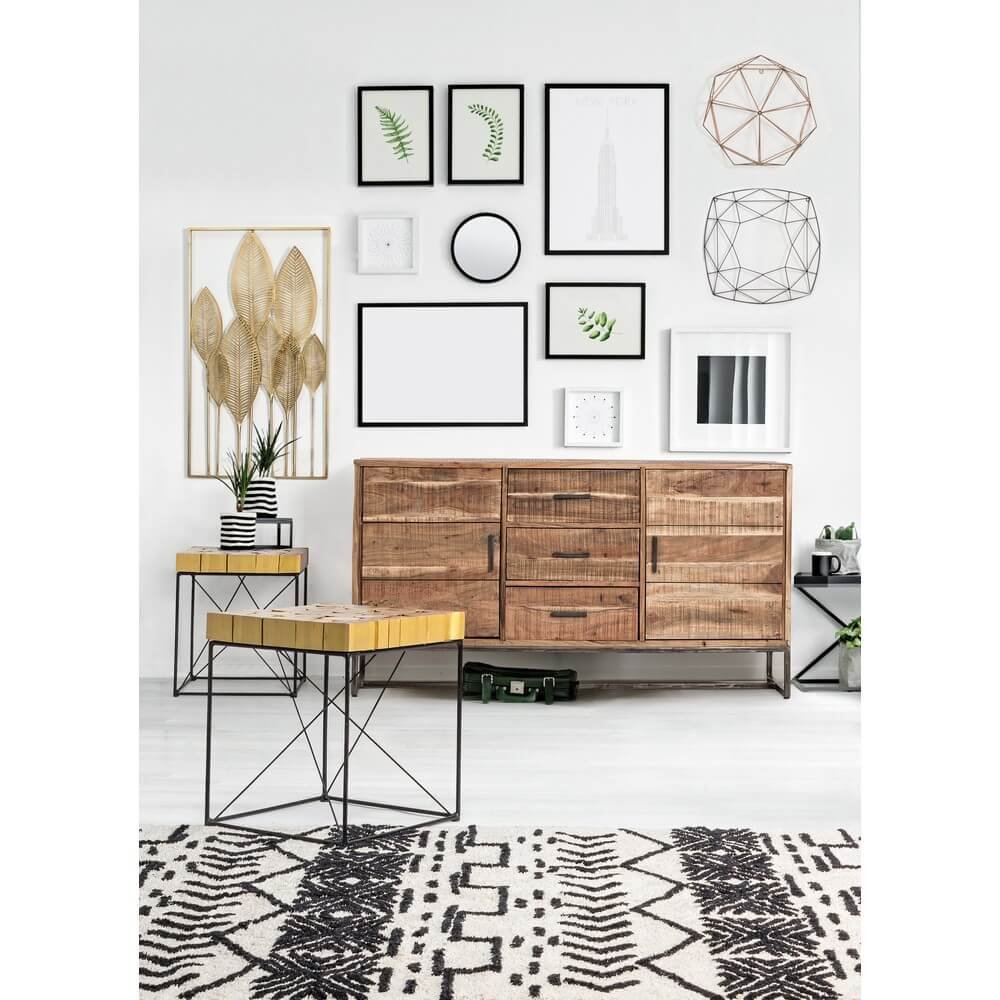 La Decorazione da Parete Acciaio Oro Moderna 52×95 cm – HERNANDEZ è una raffinata opera d’arredo che unisce eleganza contemporanea e ispirazione naturale. Realizzata in acciaio verniciato a polvere epossidica, questa decorazione da parete si distingue per la sua composizione armoniosa di foglie stilizzate, leggere e slanciate, che creano un gioco di volumi e trasparenze all’interno di una struttura rettangolare dal profilo sottile. Il colore oro caldo e satinato dona luminosità e prestigio all’ambiente, adattandosi perfettamente a interni moderni, minimalisti o eclettici, sia in salotti sofisticati che in ingressi scenografici. Il design lineare ma ricercato della decorazione HERNANDEZ valorizza qualsiasi parete garantendo un impatto visivo di forte personalità, senza appesantire lo spazio. Ideale come elemento decorativo per chi desidera arricchire la casa con un tocco d’arte contemporanea e materiali di alta qualità, questa decorazione trasmette charme e armonia visiva, valorizzando l’ambiente con uno stile deciso ma equilibrato.