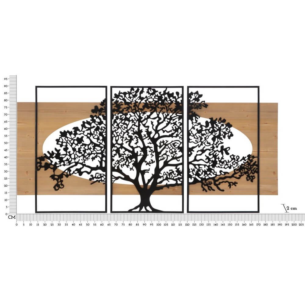 Decorazione Parete Albero Ferro e Legno Set 3 Pezzi cm 176X2X90 - TREE