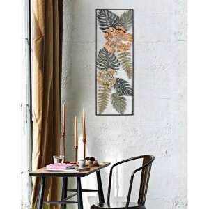 Pannello rettangolare con foglie in metallo. I pannelli 3D sono il nuovo trend per decorare le pareti. Il metallo laccato si declina in forme geometriche, vegetali o animali che conferiscono un’allure glamour e sorpendente ad ogni ambiente