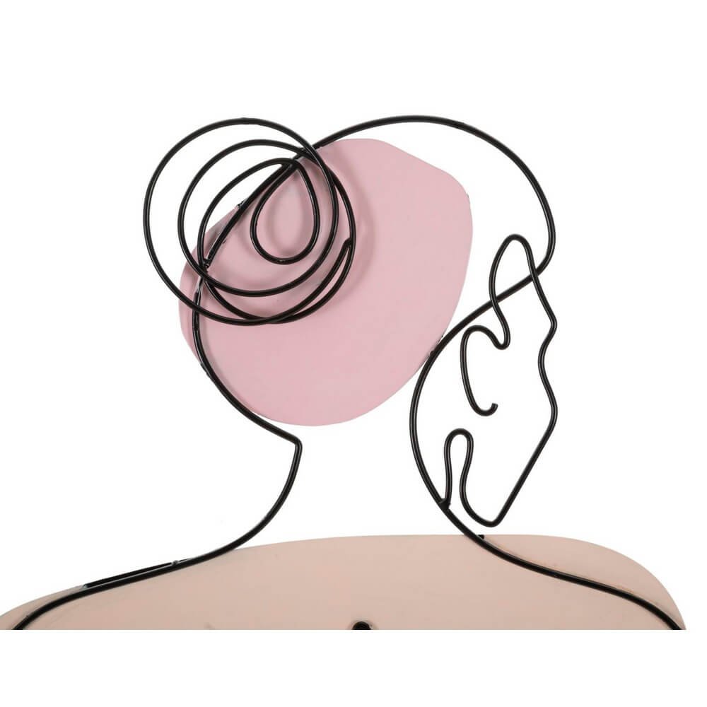Pannello decorativo 3D da parete in metallo nero dai tratti delicati che vanno a comporre la figura di una ragazza seduta di spalle in un prato fiorito. Impreziosito da parti colorate che donano luminositร .