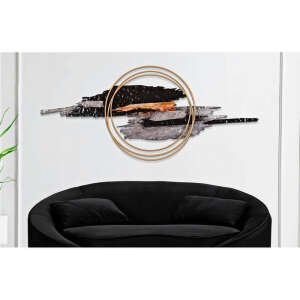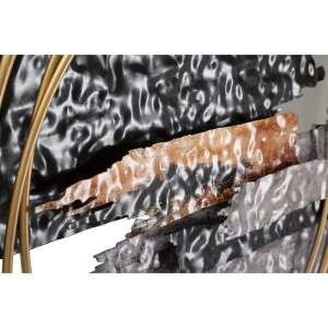 Pannello decorativo 3D da parete in metallo dal decoro astratto in un doppia cornice in metallo dorato.