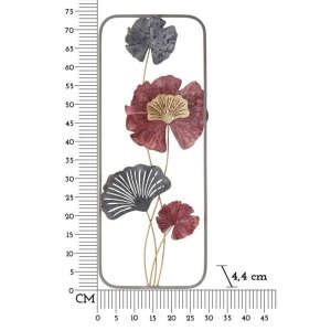 Pannello decorativo 3D da parete in metallo composto da fiori colorati e foglie in un’elegante cornice rettangolare con gli angoli smussati.