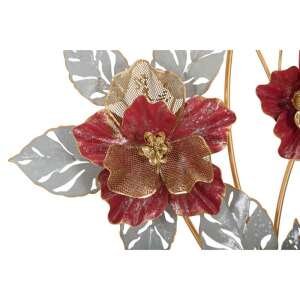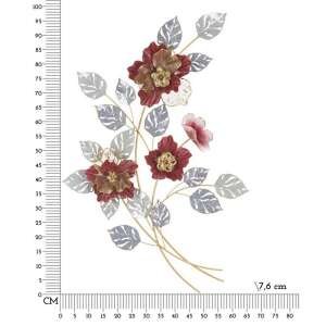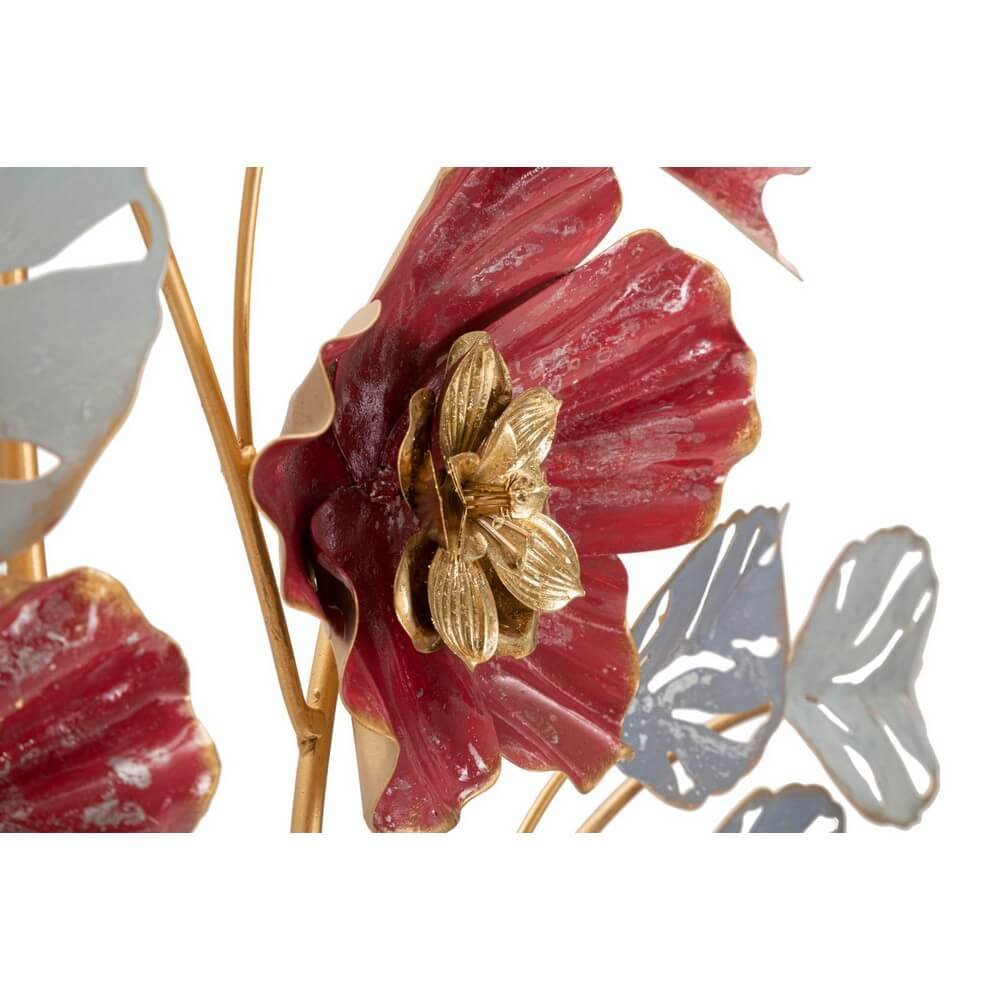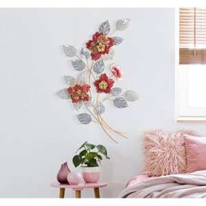 Pannello decorativo 3D da parete in metallo raffigurante dei fiori dai colori accesi e delle foglie.