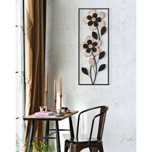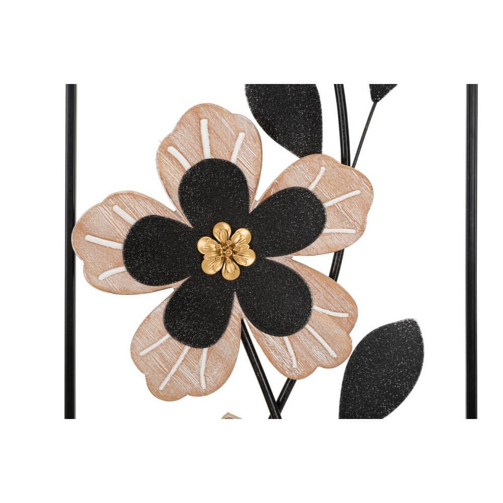 Pannello decorativo 3D da parete in metallo e legno composto da eleganti fiori racchiusi in una cornice rettangolare in legno.