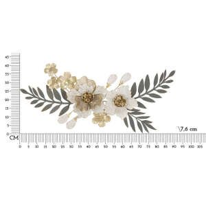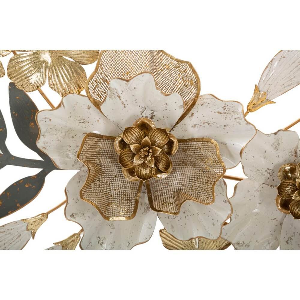 Pannello decorativo 3D da parete in metallo composto da fiori e foglie.