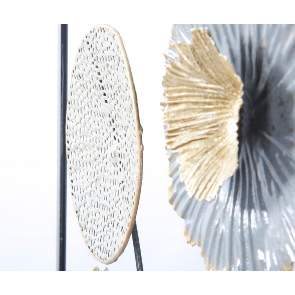 Pannello in metallo con fiori e foglie. La natura incontra l’arte. I pannelli 3D sono il nuovo trend per decorare le pareti. Il metallo si declina in forme geometriche, vegetali o animali che conferiscono un’allure glamour e sorpendente ad ogni ambiente