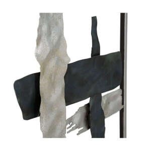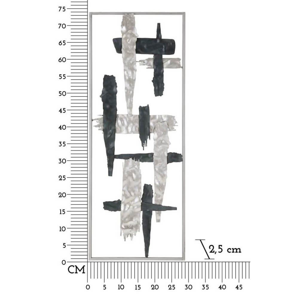 Pannello decorativo 3D da parete in metallo composto da figure astratte in un’elegante cornice rettangolare.