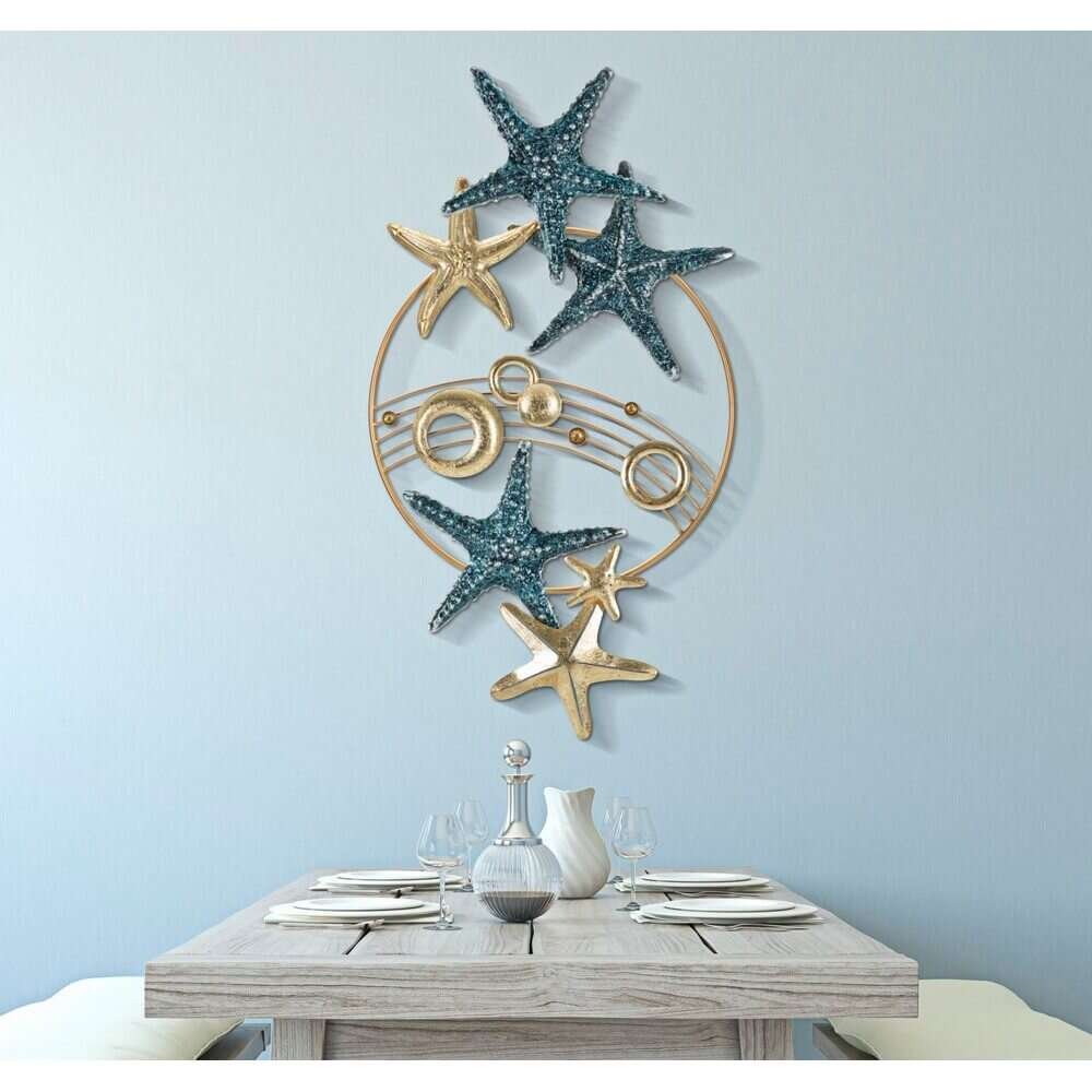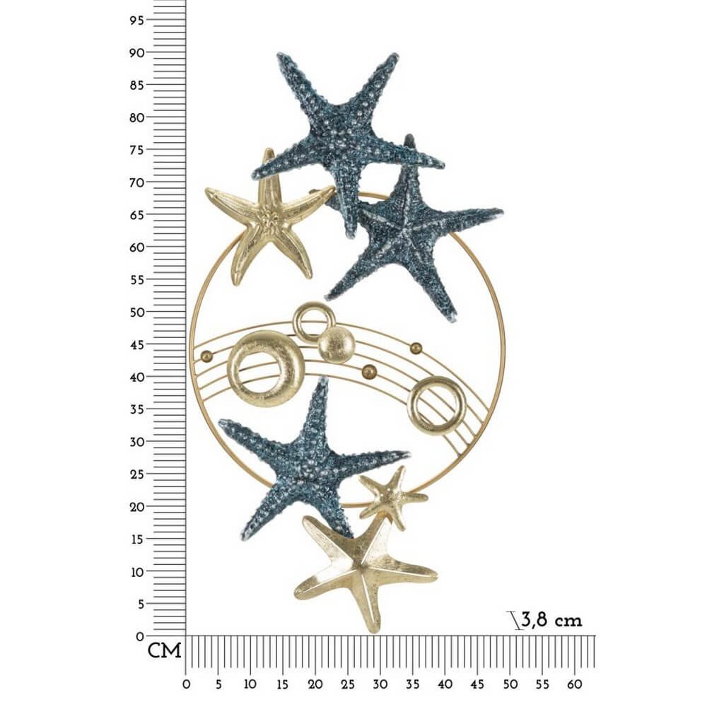 Pannello decorativo 3D da parete in metallo raffigurante delle stelle marine in un elegante cornice dorata.
