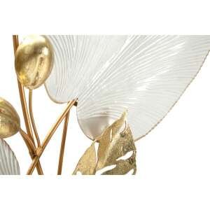 Pannello decorativo 3D da parete in metallo composto da rami con foglie bianche e dorate.