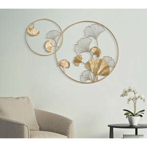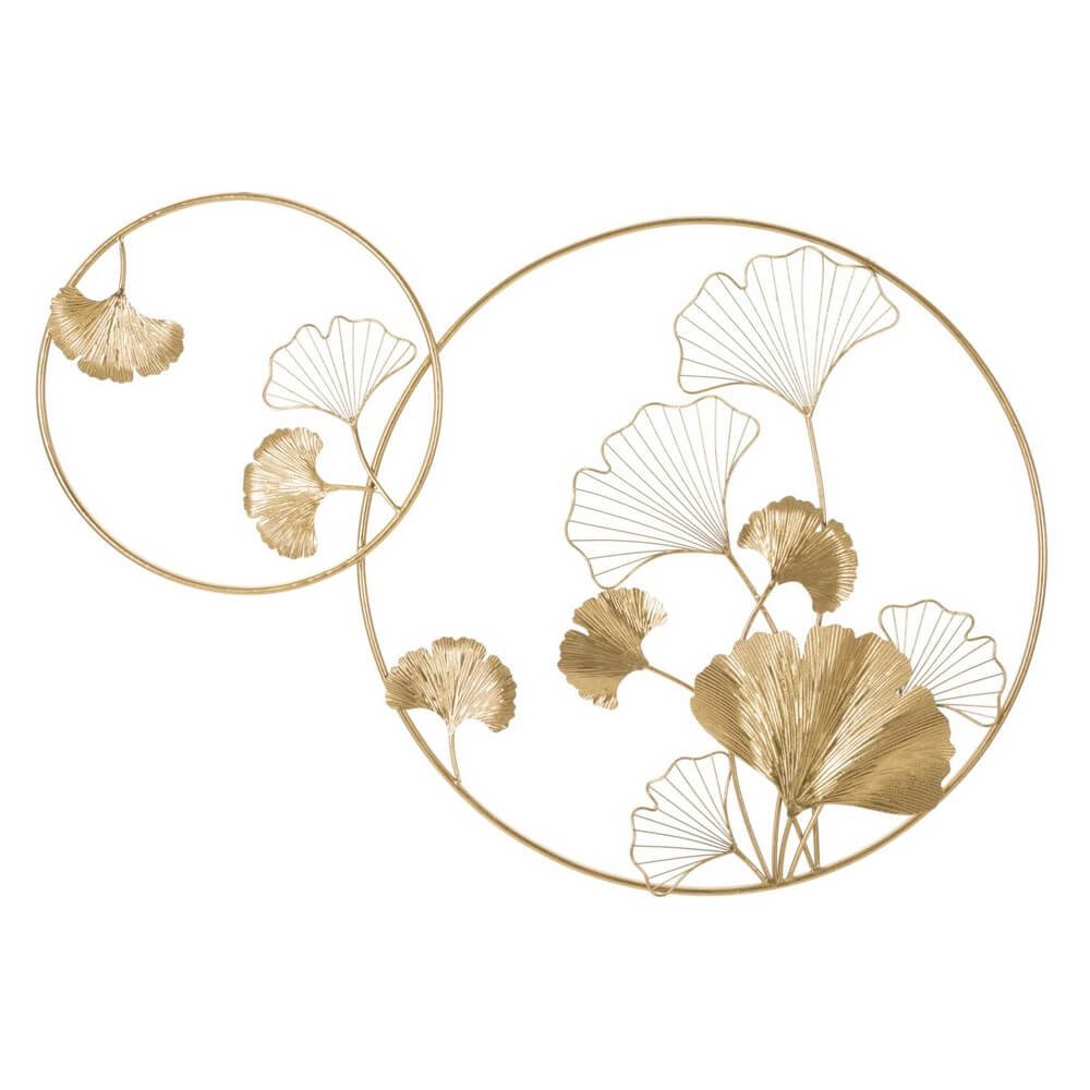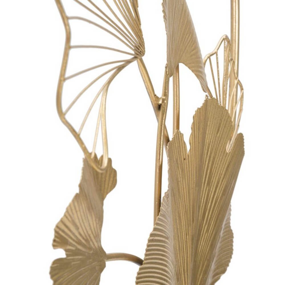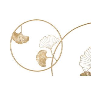 Pannello decorativo 3D in metallo dorato dalla forma geometrica e con i decori che richiamano le foglie e la natura. Un tocco di classe per ogni ambiente.