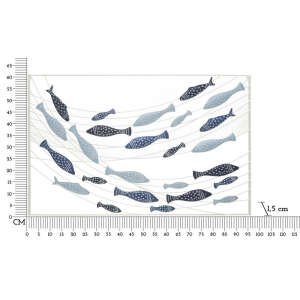 Pannello decorativo 3D da parete in metallo raffigurante dei pesci in un’elegante cornice rettangolare.