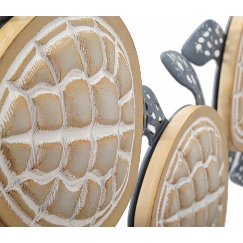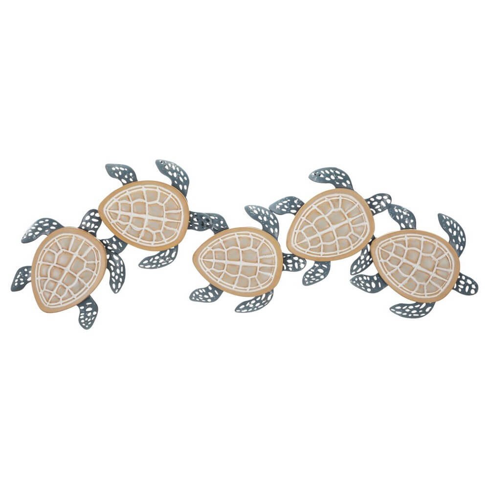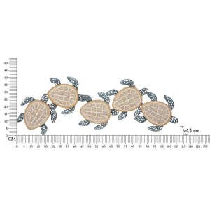 Pannello decorativo 3D da parete in metallo e legno raffigurante delle tartarughe marine che nuotano.