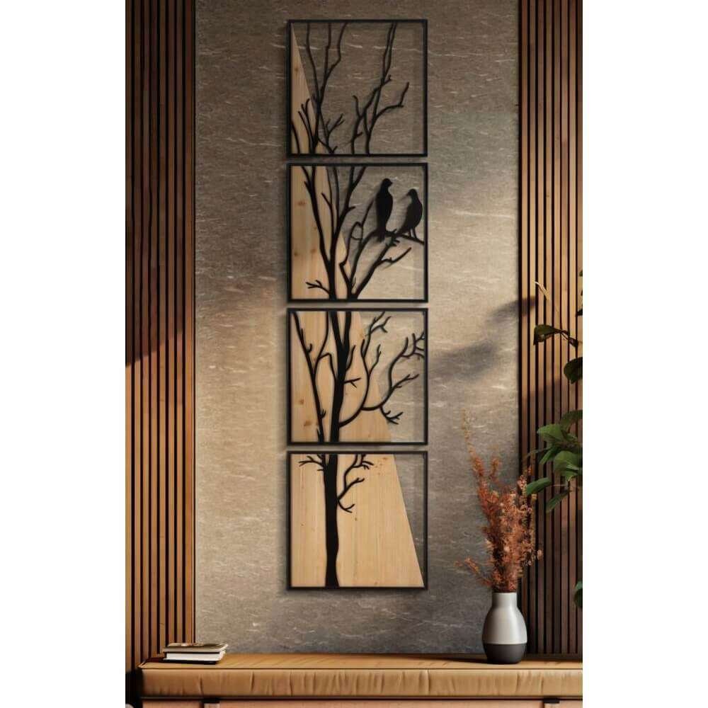 Decorazione Parete Uccelli Ferro e Legno Set 4 Pezzi cm 50X2X200 (50X2X50) – BIRD
