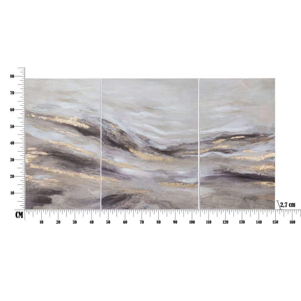 Trittico di dipinti su tela con telaio in legno. Originali dipinti astratti dalle linee ipnotiche e dai colori caldi che conferiscono uno stile unico ed elegante. Un tocco d’arte direttamente a casa tua.