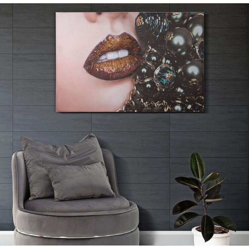 Stampa su tela con telaio in legno raffigurante un volto di donna. I colori caldi donano un tocco di allegria ad ogni ambiente.