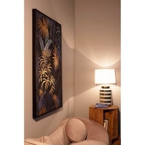 Il Quadro Multicolore Tela Moderna da Parete 82×122 cm – KATRINA è un’affascinante opera d’arte contemporanea da parete, perfetta per valorizzare ambienti eleganti e sofisticati. Realizzato su tela con stampa di alta qualità, questo quadro si distingue per le ricche applicazioni a olio e le raffinate foglie dorate, che aggiungono un tocco luminoso e prezioso alla scena botanica. I colori intensi e vibranti – tra blu profondi, accenti verdi e dettagli oro – creano un contrasto dinamico su fondo scuro, evocando un’esuberante giungla tropicale stilizzata. La base in MDF conferisce solidità, mentre il formato ampio lo rende un punto focale perfetto per il soggiorno, la zona pranzo o l’ingresso. Il design moderno e la combinazione di materiali pregiati rendono il quadro KATRINA una scelta ideale per chi desidera un complemento d’arredo decorativo che unisca arte e stile. In un contesto di arredo contemporaneo o eclettico, questo quadro è pensato per catturare lo sguardo e trasformare l’atmosfera, offrendo ogni giorno un’esperienza visiva affascinante e coinvolgente.