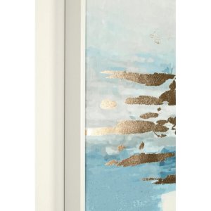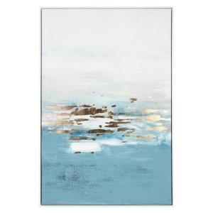 Il Quadro su Tela Multicolore Moderno da Parete 82,6×122,6 – DMITRI è una sofisticata opera decorativa pensata per valorizzare ambienti contemporanei con eleganza e raffinatezza. Realizzato su tela e impreziosito da una stampa dipinta a mano, questo quadro unisce tonalità eteree di bianco e azzurro con applicazioni in foglia dorata che catturano la luce, conferendo profondità e vitalità alla composizione. La cornice in MDF dal profilo sottile accentua lo stile moderno dell’opera, incorniciando delicatamente una scena astratta che richiama la tranquillità dell’acqua e della luce riflessa. Grazie al suo design equilibrato e alla palette cromatica luminosa, DMITRI è perfetto per arredare soggiorni, camere da letto o ingressi in stile moderno o minimalista, aggiungendo un tocco artistico e una nota di charme. Ogni dettaglio, dalla matericità della tela alle sfumature oro, è pensato per trasmettere leggerezza visiva e sensazioni di serenità. Il quadro su tela DMITRI dà il meglio di sé in uno spazio ben illuminato, dove i contrasti cromatici e le superfici dorate possono esprimere appieno il loro impatto estetico.