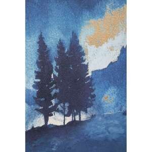 Stampa su tela con telaio in legno dal design impressionista che ricorda un paesaggio di montagna. Le tonalità del blu unite alle decorazioni dorate creano un delicato contrasto che dona un tocco di magia ad ogni ambiente.