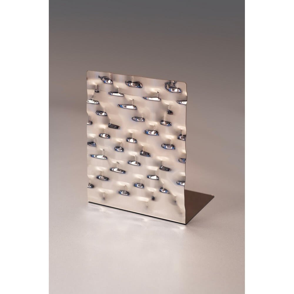Il Fermalibro in acciaio lucidato ed effetto bark – Miroir è la scelta ideale per chi desidera arricchire la propria casa o l’ufficio con un accessorio di design raffinato e funzionale. Realizzato in acciaio inox argentato, questo soprammobile si distingue per la superficie lucida e lavorata a rilievo con un esclusivo effetto bark, che richiama la texture naturale della corteccia e riflette la luce creando sofisticati giochi visivi. Le dimensioni generose (23 cm di altezza, 17,5 cm di larghezza e 12,5 cm di profondità) garantiscono stabilità e praticità, permettendo di sostenere anche volumi pesanti senza rinunciare all’eleganza. La qualità costruttiva dell’acciaio inox assicura resistenza, durata e una brillantezza che rimane inalterata nel tempo, rendendo il fermalibro perfetto sia come elemento decorativo per librerie, mensole e scrivanie, sia come dettaglio distintivo in ambienti moderni, minimalisti o di ispirazione industriale. L’esperienza d’uso è arricchita dalla sensazione di solidità e dalla piacevole percezione tattile della superficie lavorata, mentre il design contemporaneo e la finitura specchiata valorizzano ogni spazio, aggiungendo un tocco di classe e originalità che esprime al meglio il proprio valore in composizioni curate e ambienti ricercati.