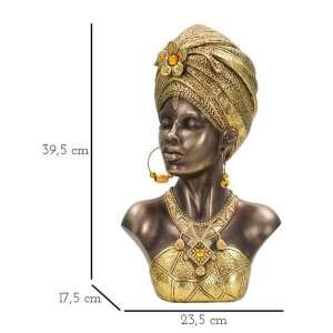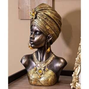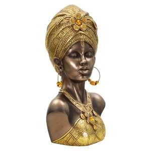 Busto di donna con turbante e vestiti che richiamano le tribù africane.