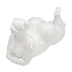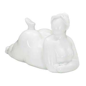 Elegante statua bianca raffigurante una donna sdraiata.