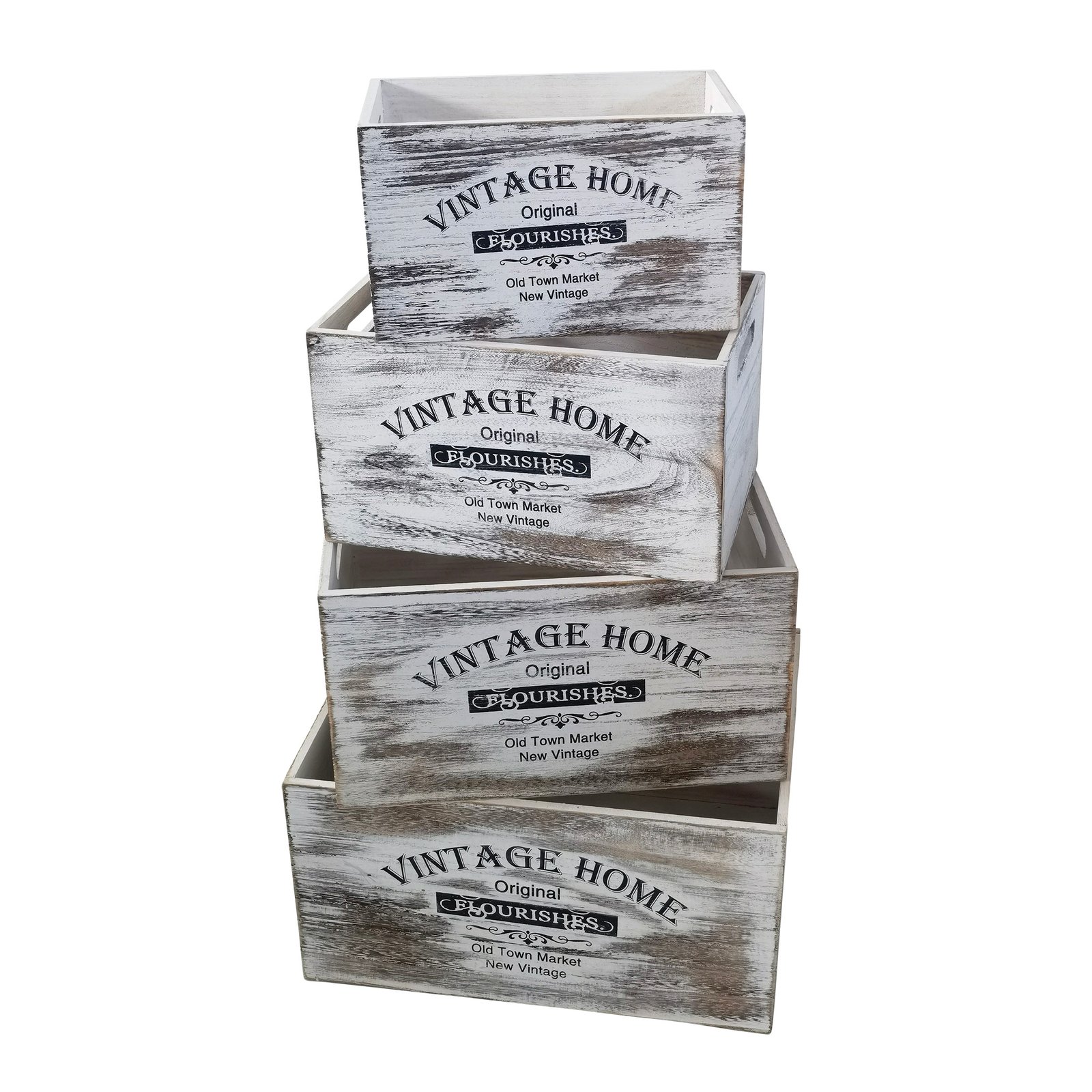 Il Set di cassette in legno contenitori decorative – PONTIUS è un raffinato complemento d’arredo perfetto per chi desidera aggiungere un tocco shabby chic a spazi come café, salotti o ingressi domestici. Realizzate interamente in legno, queste quattro cassette di dimensioni diverse si distinguono per la finitura grigia con effetto decapato, che mette in risalto le venature naturali del materiale e conferisce un’eleganza vissuta di grande fascino. La stampa “Vintage Home – Old Town Market – New Vintage” sul fronte rafforza lo stile romantico e rétro del set, rendendolo ideale sia come soprammobile decorativo che come contenitore funzionale. Con dimensioni versatili (da 42x31x22 cm a 27x16x16 cm), le cassette PONTIUS offrono soluzioni pratiche per l’organizzazione di oggetti, piante, tessuti o riviste. La struttura fissa garantisce robustezza e durata nel tempo, mentre l’estetica curata nei dettagli le rende protagoniste in qualsiasi ambiente arredato con gusto vintage o rustico. Il set di cassette in legno PONTIUS esprime il meglio di sé inserito in contesti accoglienti e curati, dove ogni elemento contribuisce a creare un’atmosfera calda e autentica.