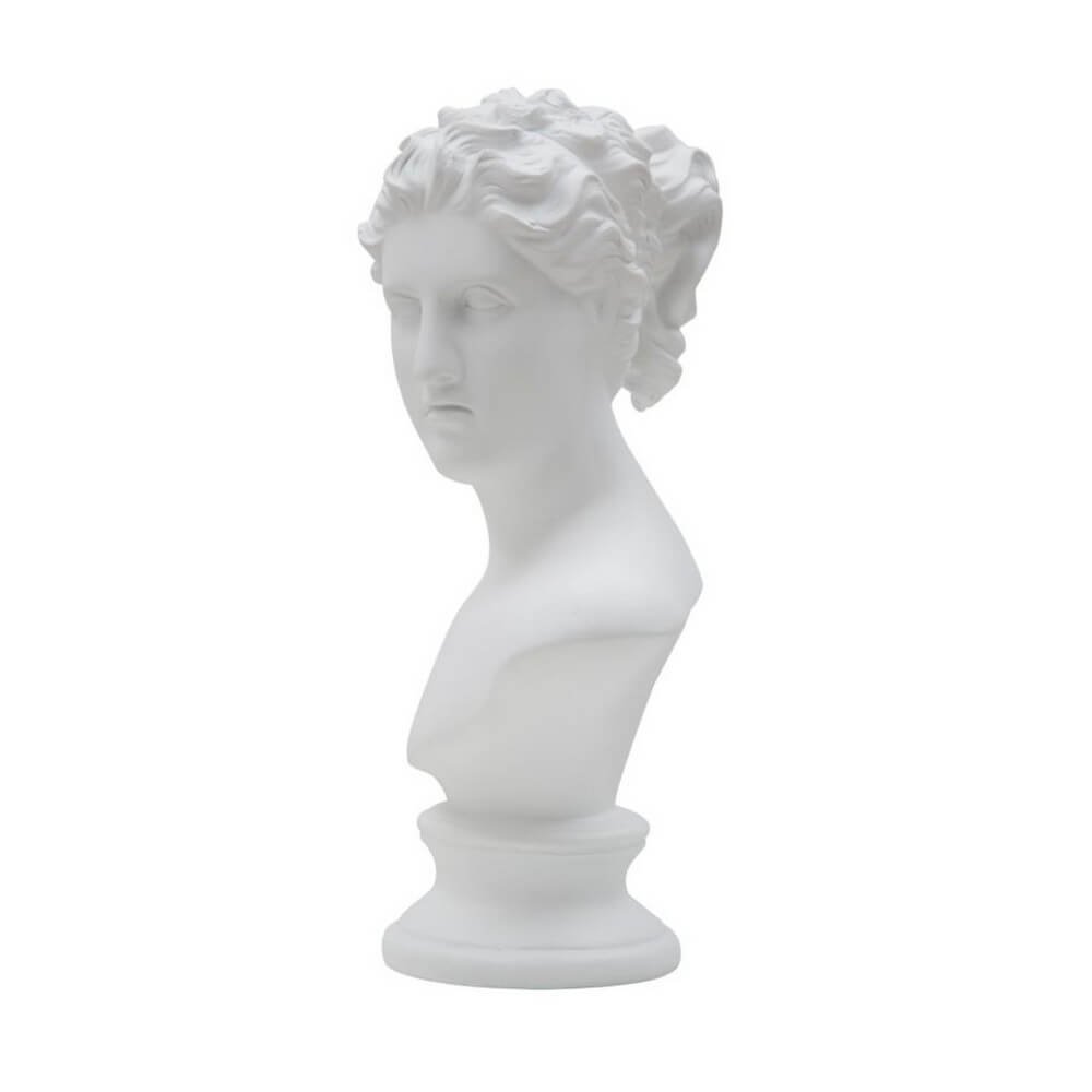 Statuetta di testa di donna in resina ispirata alla scultura classica. Perfetta per donare un tocco d’arte ad ogni stanza. Il colore bianco si sposa alla perfezione con ogni tipologia di arredamento.