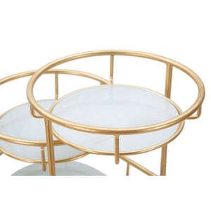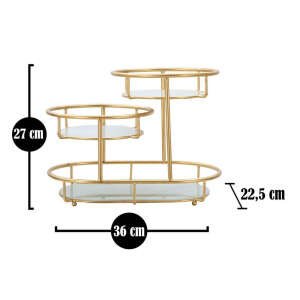 Svuotatasche su tre livelli in metallo dorato con piani in vetro a specchio. La struttura particolare ma essenziale crea un oggetto utile e di design per unire praticità e stile.