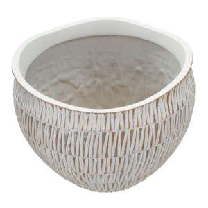Cachepot in resina elegantemente decorato da intagli geometrici e lineari.