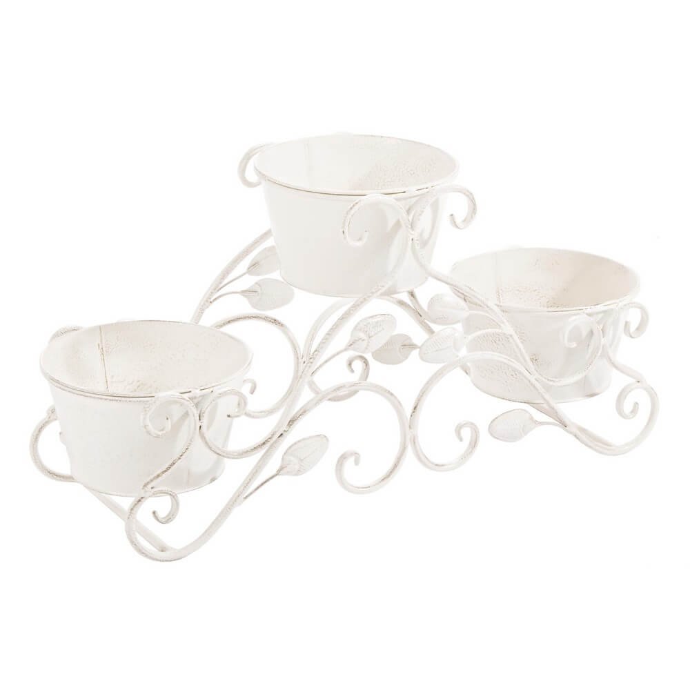 Il Set 2 Vasi 3 Piani Acciaio Bianco Rustico da Interno – IRENE è una raffinata soluzione decorativa che unisce eleganza romantica e funzionalità, ideale per valorizzare ambienti interni con uno stile shabby chic o rustico. Realizzato in resistente acciaio verniciato a polvere epossidica, questo set si distingue per la struttura a tre livelli, arricchita da sinuose volute e dettagli a foglia che evocano un’atmosfera delicata e artigianale. Il colore bianco con finitura leggermente anticata dona un tocco vintage e luminoso, perfetto per accostarsi a mobili in legno chiaro, ferro battuto o arredi dal gusto provenzale. Ogni vaso è armoniosamente incastonato nella base, garantendo stabilità e una disposizione scenografica delle piante o dei fiori scelti. Il design a più piani ottimizza lo spazio e consente una presentazione dinamica e visivamente piacevole. Il set IRENE è ideale come punto focale su una consolle, una mensola o in una veranda, dove esprime appieno il suo fascino decorativo, contribuendo a creare un’atmosfera accogliente e curata. Una scelta sofisticata per chi desidera arricchire la propria casa con dettagli di stile e qualità artigianale.