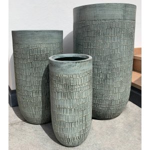 Il **Set di vasi in Fibra sintetica cm 44x44x79 – SAMSON** si distingue per il design moderno e sofisticato, ideale per valorizzare qualsiasi ambiente indoor o outdoor con uno stile contemporaneo e raffinato. Realizzati in resistente fibra sintetica color antracite, questi tre vasi di diverse dimensioni (grande 44x44x78,5 cm, medio 34x34x64 cm, piccolo 24x24x49 cm) presentano una superficie dal suggestivo effetto materico, caratterizzata da una texture geometrica che richiama moduli architettonici stilizzati. Questo gioco di rilievi crea un’interessante profondità visiva e rende i vasi non solo contenitori per piante, ma vere e proprie sculture decorative. La finitura opaca e lievemente ruvida amplifica l’effetto pietra, trasmettendo solidità ed eleganza. Il set SAMSON è perfetto per accentuare zone living moderne, giardini curati, terrazze o ingressi dal gusto minimal-chic. Oltre al forte impatto estetico, la fibra sintetica garantisce leggerezza, resistenza agli agenti atmosferici e praticità di spostamento. Questo set di vasi esprime al meglio il proprio valore quando inserito in contesti di design dove i dettagli fanno la differenza, elevando l’esperienza dell’arredo con un tocco sobrio ma determinante.