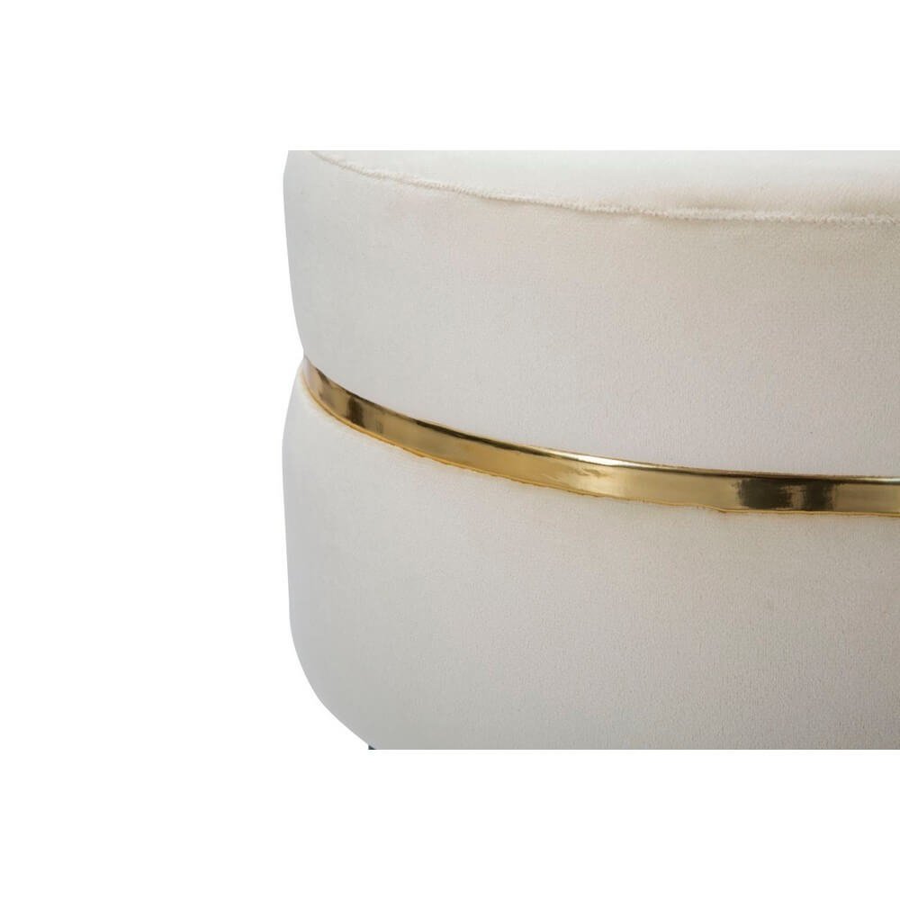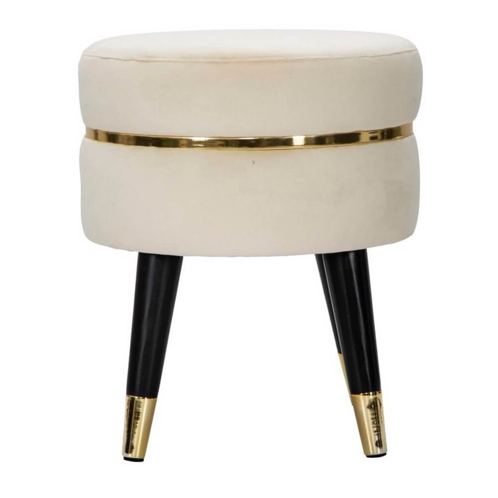 Sgabello in legno e velluto crema. Sedute dalla finitura dorata che si ispirano ai camerini delle grandi dive di Hollywood. Ideali da collocare in camera da letto o in salotto per sentirsi delle star.