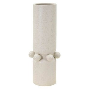 Vaso in ceramica bianca elegantemente decorato con delle sfere.