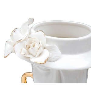 Elegante vaso in porcellana bianca con delicate decorazioni dorate. Il particolare design ispirato ad un volto femminile e le forme morbide donano un tocco di grazia e bellezza.