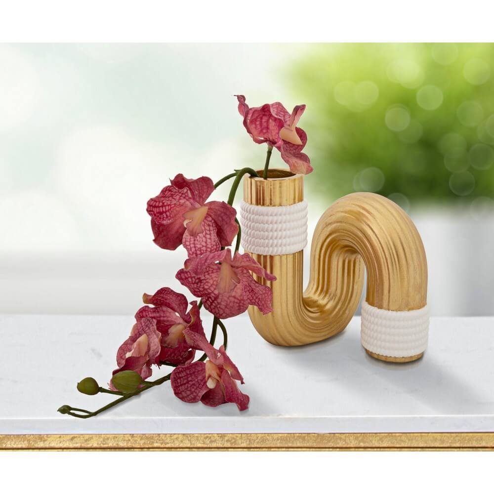 Elegante vaso bianco e dorato dalle linee semplici, morbide e sinuose