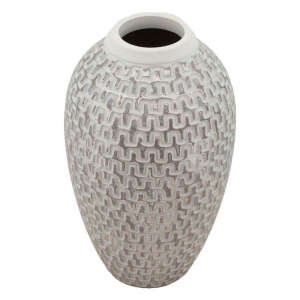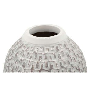 Vaso in resina elegantemente decorato con intagli che richiamano i castelli medievali.