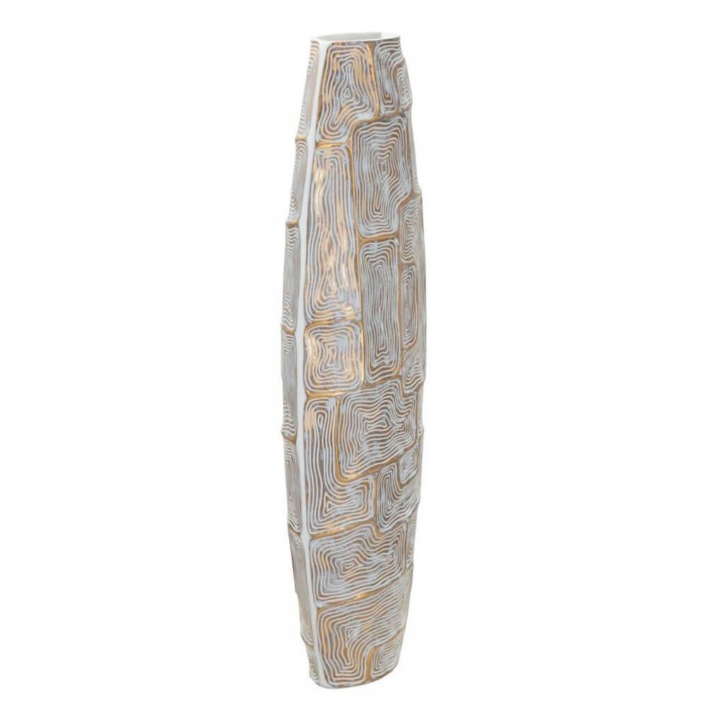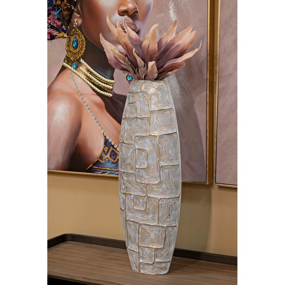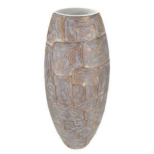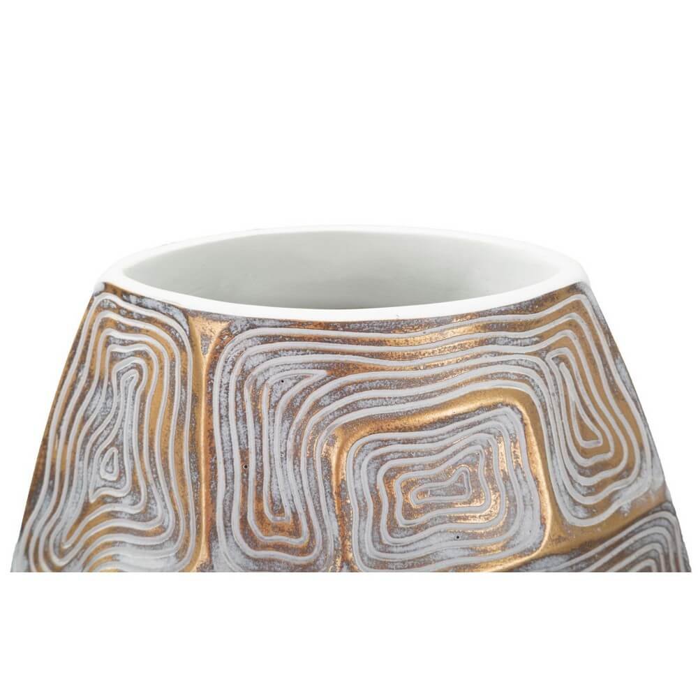 Vaso in resina elegantemente decorato da forme geometriche dalle linee morbide e arrotondate.