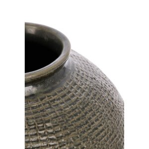 IlโฏVaso Terracotta Verde Rustico da Interno ร47 cm โ ASTERIONโฏรจ un raffinato elemento decorativo che unisce autenticitร artigianale e carattere estetico distintivo. Realizzato interamente in terracotta e lavorato a mano, questo vaso cattura lo sguardo con la sua superficie superiore verde scuro dal motivo a rilievo leggermente geometrico, che si fonde armoniosamente con la parte inferiore lasciata al naturale, in terracotta grezza color bruno-rossastro. La forma ampia e rotondeggiante trasmette un senso di soliditร e radicamento, mentre le imperfezioni e le variazioni di tonalitร raccontano la storia di un manufatto unico, autentico e ricco di personalitร . Grazie alla sua versatilitร , รจ perfetto sia per ambienti interni che esterni, integrandosi con naturalezza in stili dโarredo rustici, etnici o contemporanei dallo spirito organico. Il Vaso TERRACOTTA VERDE RUSTICO da Interno ร47 cm โ ASTERION trasmette unโeleganza materica ideale per arricchire con gusto angoli living, ingressi o terrazze, valorizzando la semplicitร con un tocco di autenticitร artigianale che invita a rallentare e godere della bellezza delle cose fatte a mano.
