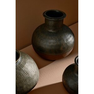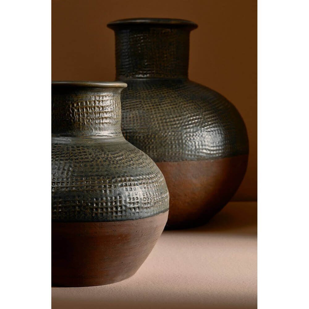 Il Vaso Terracotta Verde Rustico da Interno H53 cm โ ASTERION รจ un elemento decorativo di grande impatto visivo, perfetto per valorizzare ambienti dallo stile naturale, etnico o rustico. Realizzato interamente in terracotta, questo vaso artigianale unisce autenticitร e matericitร , grazie alla sua lavorazione a mano che lo rende unico, con leggere variazioni di colore e imperfezioni che ne esaltano il carattere. Il design tondeggiante con collo alto si distingue per la superficie superiore finemente texturizzata in verde scuro, che si contrappone armoniosamente alla base lasciata in terracotta naturale, creando un equilibro caldo e sofisticato. Lโeffetto visivo richiama la tradizione, ma si integra perfettamente anche in contesti piรน moderni grazie al contrasto cromatico intenso e alla presenza materica. Versatile e resistente, puรฒ essere utilizzato sia come oggetto decorativo da interno che da esterno. Il Vaso ASTERION si esprime al meglio su una console, accanto a piante secche o come pezzo unico in un angolo luminoso della casa, donando un tocco di personalitร e artigianalitร allo spazio.