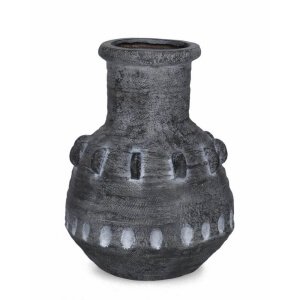 Il Vaso Tondo in Resina Grigio Rustico da Interno Ø37 cm – VELKAR è un elemento decorativo unico che unisce il fascino dell’artigianato tradizionale a materiali moderni e resistenti. Realizzato a mano in resina con finitura effetto magnesia, questo vaso presenta una texture grezza e irregolare che riproduce fedelmente l’aspetto di un oggetto in ceramica antica, arricchito da dettagli in rilievo e una superficie volutamente imperfetta che ne esalta l’autenticità. La tonalità grigio scuro, con sfumature più chiare ad effetto consumato, lo rende perfetto per ambienti dallo stile industriale, rustico o etnico, sia all’interno della casa che in spazi esterni, grazie alla sua struttura robusta e resistente agli agenti atmosferici. Ogni pezzo è unico, con leggere variazioni cromatiche che ne sottolineano il carattere artigianale. Il Vaso Tondo in Resina Grigio Rustico da Interno Ø37 cm – VELKAR esprime al meglio il proprio valore quando abbinato ad arredi naturali o come complemento raffinato in contesti minimal, donando profondità visiva e un tocco di matericità autentica a qualsiasi ambiente.
