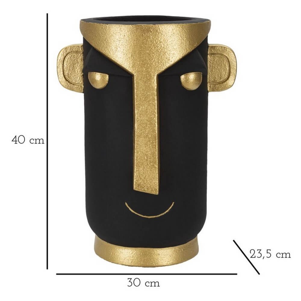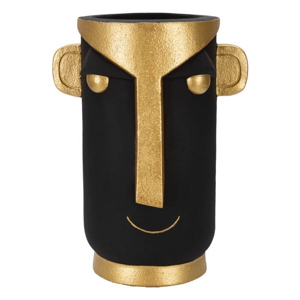 Vaso raffigurante un volto stilizzato con eleganti tratti dorati ispirato alle tribรน primitive.
